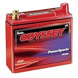 ODYSSEY Batteries Powersports Battery features a rugged construction, built to take the constant pounding that comes with the territory, whether that territory is on land, sea, or snow. The ODYSSEY battery can handle it. Packed tightly with pure lead plates, the non-spillable AGM design ODYSSEY battery protects against the shock and vibration that can quickly destroy other batteries. And the pure lead plates mean more power—twice the overall power and three times the life of conventional batteries—up to 400 cycles at 80 percentage depth of discharge. The ODYSSEY battery is the ideal choice for a complete range of powersports applications: motorcycles, ATVs, personal watercraft, snowmobiles, ultralight aircraft and Gyrocopter aircraft. Its construction consists of pure virgin lead plates for maximum surface area and optimized recycling, AGM (absorbed glass mat) design that eliminates acid spills, high conductivity, corrosion-resistant tin-plated brass terminals, high integrity terminal seal, a sealed design resulting in gases recycled internally during operation or charging, a safety relief valve per cell and robust intercell connections to prevent vibration damage. ODYSSEY batteries beat spiral-wound. Compared to spiral-wound batteries of equal size, ODYSSEY batteries pack 15 percentage more plate surface area into the case. Avoiding the dead space between cylinders in six-pack designs means ODYSSEY batteries deliver more power and 40 percentage more reserve capacity.